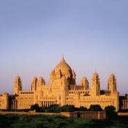 El imponente Umaid Bhawan Palace y sus vastos jardines surgen como un oasis en la cima de Jodhpur. Parcialmente convertido en hotel de lujo, es uno de los últimos grandes palacios de la India y una de las mayores residencias del mundo.